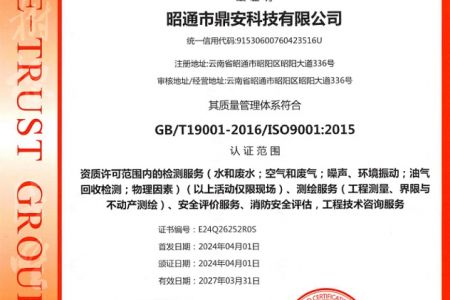 2003年11月10日,昭通市鼎安科技有限公司成立,初始主要從事第三方安全工程技術(shù)服務(wù),經(jīng)多年運(yùn)營,發(fā)展為多專業(yè)綜合科技平臺,為社會提供多種專業(yè)技術(shù)服務(wù)工作。 現(xiàn)公司注冊資金為1200萬元,公司法定代表人:毛衛(wèi)旭。公司主要業(yè)務(wù):安全評價、安全標(biāo)準(zhǔn)化評審、安全工程技術(shù)服務(wù);環(huán)境監(jiān)測、職業(yè)衛(wèi)生檢測、檢驗(yàn);法律訴訟及非訴訟服務(wù);司法鑒定、固定資產(chǎn)投資項(xiàng)目節(jié)能服務(wù);工程咨詢;工程測量測繪;安全教育培訓(xùn)等。是安全生產(chǎn)服務(wù)、安全教育培訓(xùn)機(jī)構(gòu),也是環(huán)境監(jiān)測和職業(yè)衛(wèi)生服務(wù)機(jī)構(gòu),同時也是綜合的檢測檢驗(yàn)、綜合科技平臺服務(wù)機(jī)構(gòu)。多年來為公、檢、法、司、軍、警、海關(guān)、仲裁、安監(jiān)、工礦商貿(mào)企業(yè)、社會團(tuán)體及個人提供多專業(yè)技術(shù)服務(wù)。